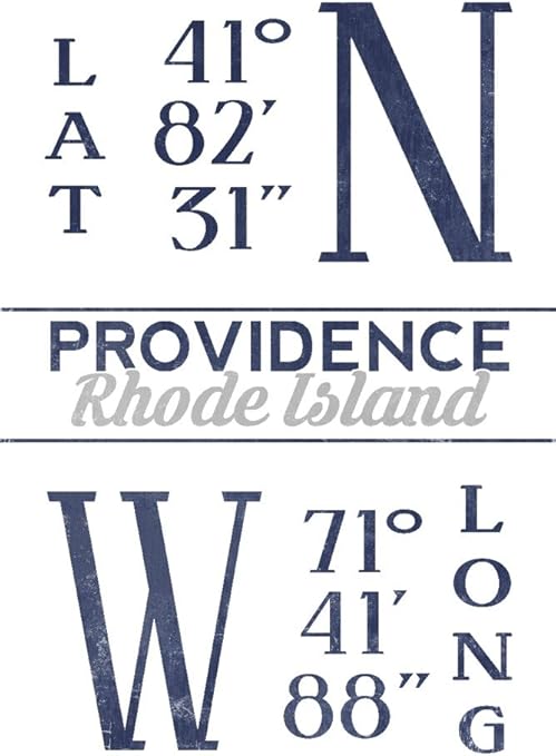 Providence Rhode Island Latitude And Longitude Blue Art Print Lantern Press Art Com